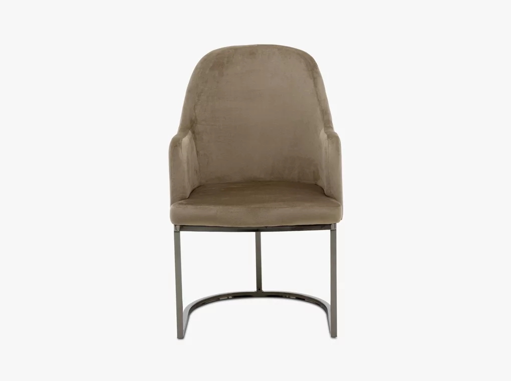 Elegáns étkezőszék puha huzattal választható színben, íves fényes lábakkal.