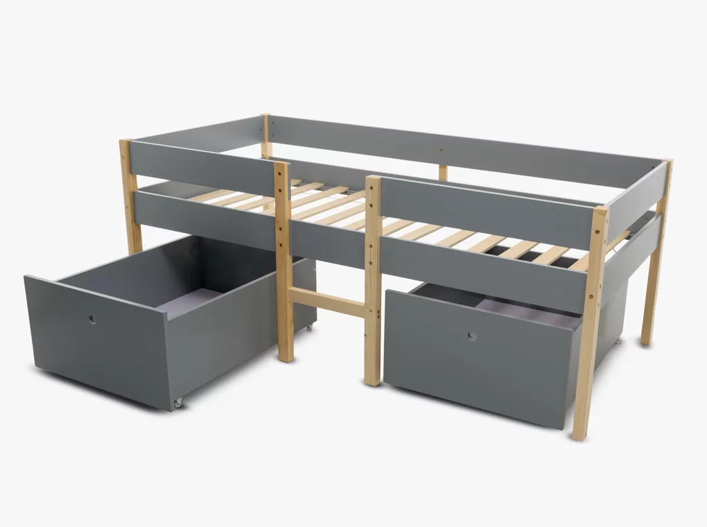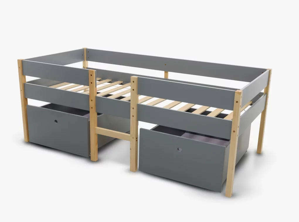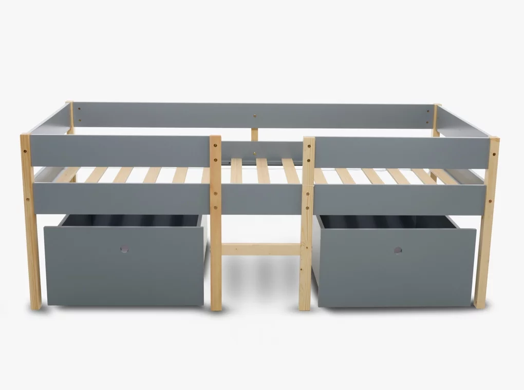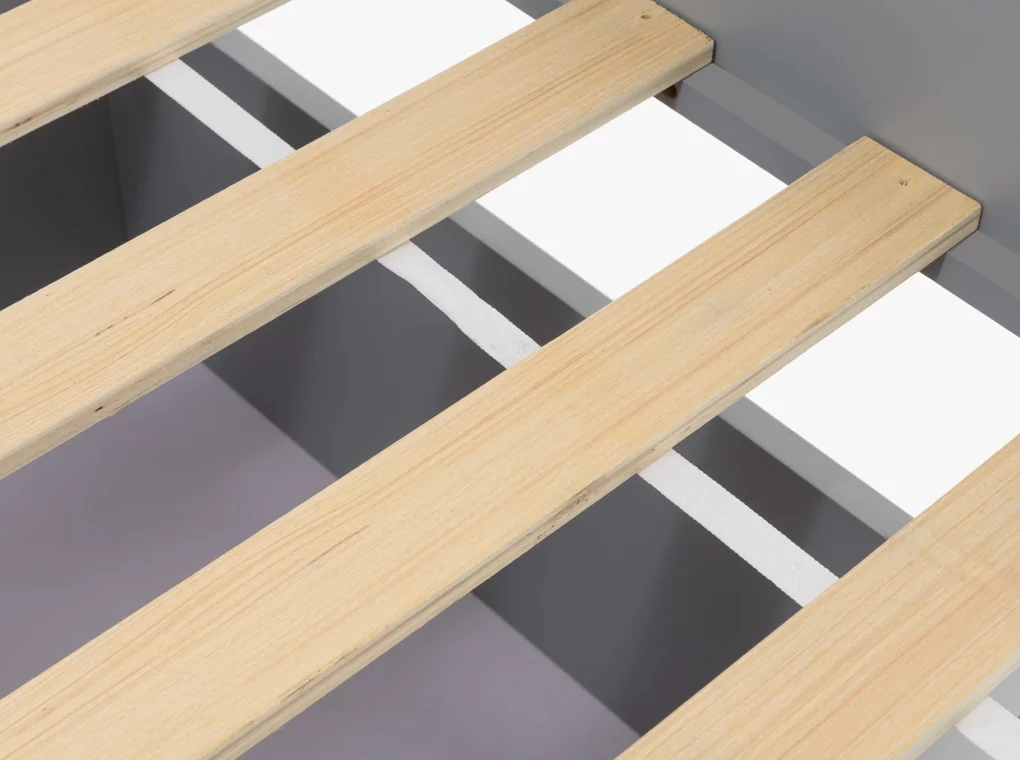 ✔Tömör fenyőből készült ifjúsági ágykeret, szürke/natúr színben.